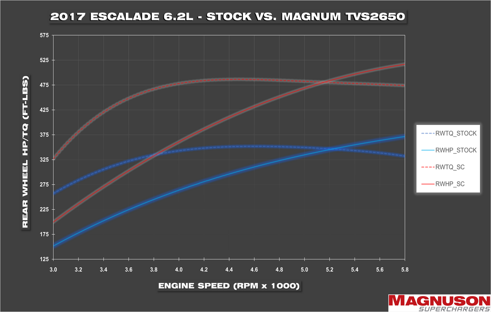 - +45% Horsepower — 640 hp & 579 ft-lbs at the crank