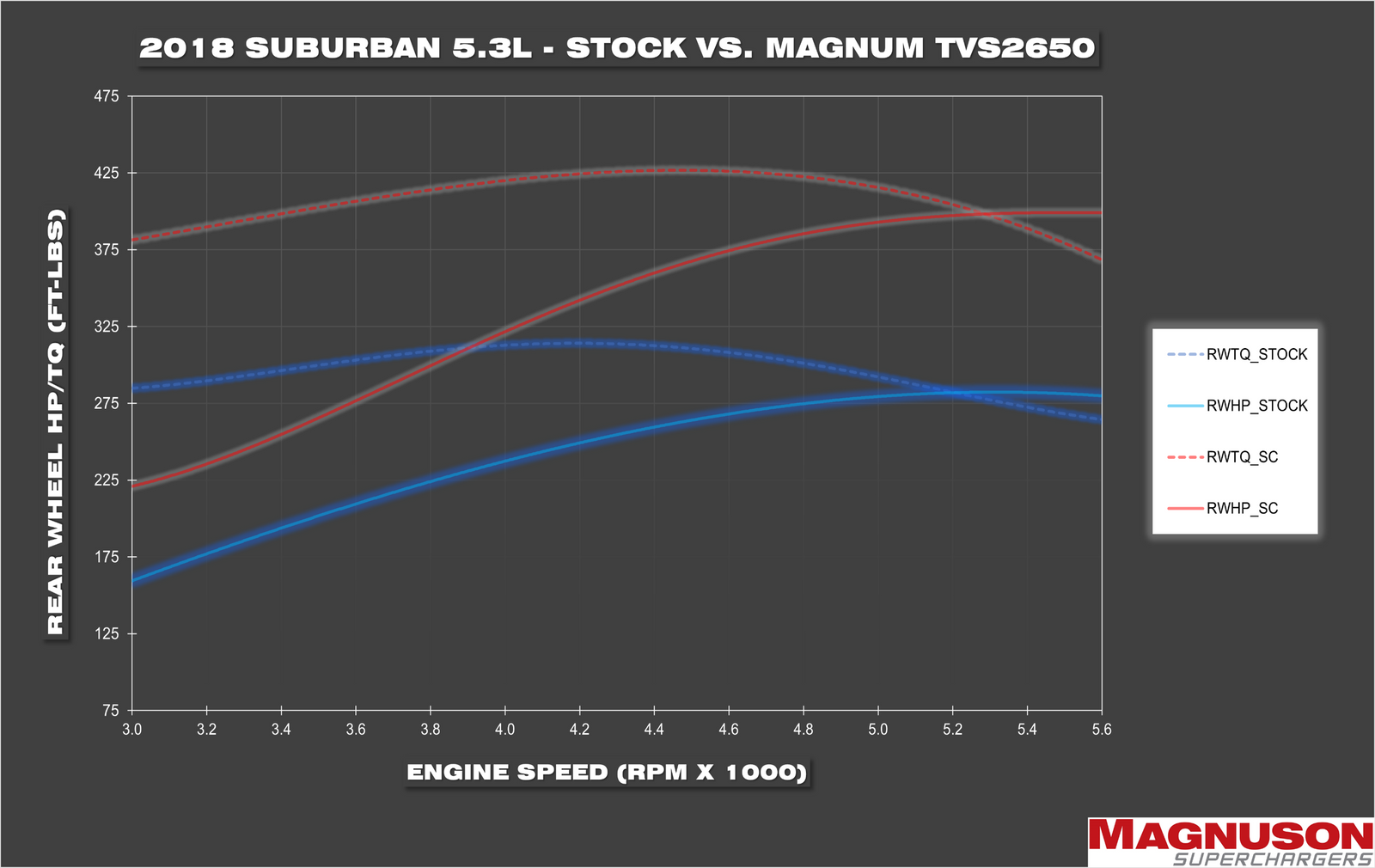Take your GM Truck or SUV to the next level with Magnuson's TVS2650 Magnum Supercharger System! Built off of our premium Magnum Performance Line, our Magnum Truck Kit will give your engine an incredible 42% boost in horsepower: 485 hp and 524 ft-lbs at the crank! Featuring a massive charge air cooler, sitting directly above the supercharger outlet for maximum cooling capability. The uniquely styled lid has been designed to allow consistent and uniform air flow to all eight cylinders, for reliable, repeatable performance - all day long!